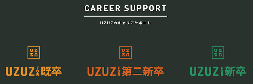 UZUZは、第二新卒や既卒、フリーターなど20代の若手人材の就職・転職支援に特化したサービスです。