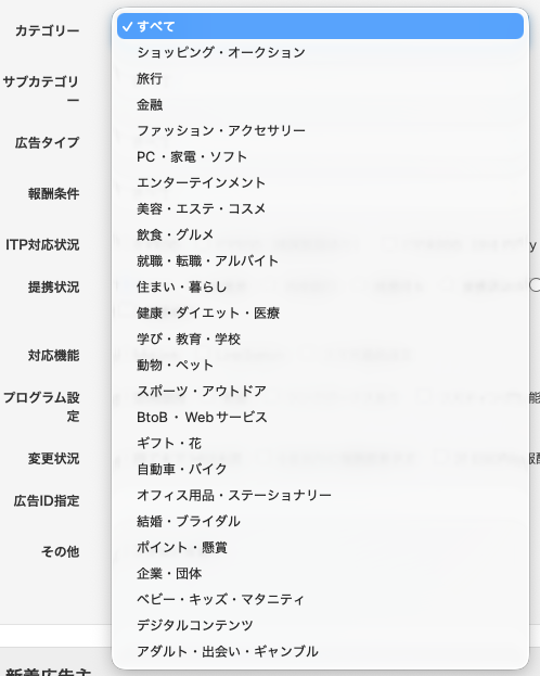 特に旅行・観光やビジネス系のジャンルは広告主が多く、季節やトレンドに合わせて選択肢を増やせます。