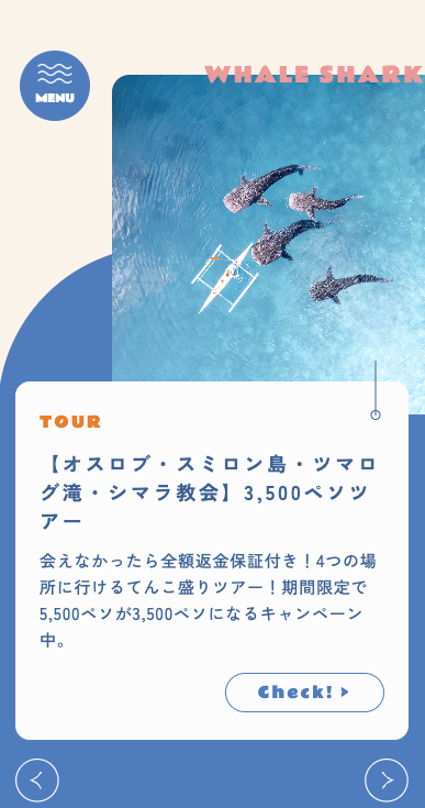 公式サイトでは、アイランドホッピングやジンベエザメツアー、市内観光、スパ体験など、豊富なツアー一覧を見ながら比較検討できます。