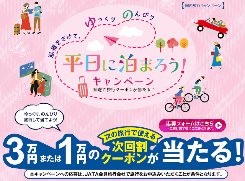 「平日に泊まろう!キャンペーン」は、平日に国内旅行を計画している方にとって非常に魅力的な特典です。