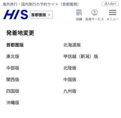 HISでは、地域ごとに「地方版ページ」が用意されており、店舗や出発空港に連動した限定クーポンが配布されることがあります。
