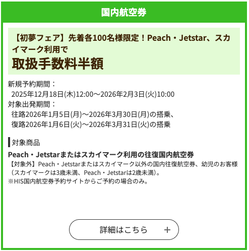 HISのクーポンと併用はできませんが、航空券のみを予約する場合は、トータルの支払額を抑えやすいサービスです。