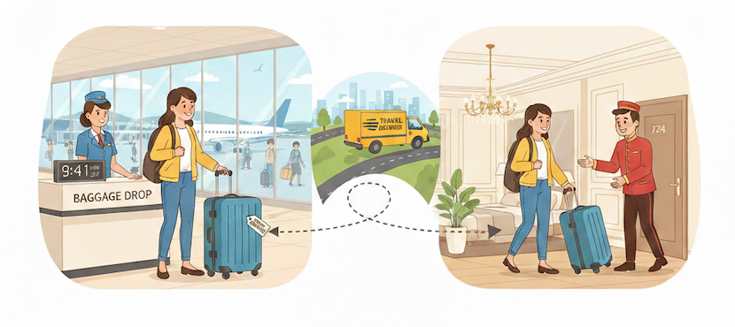 出発空港で預けた荷物が、宿泊先のホテルまで配送される