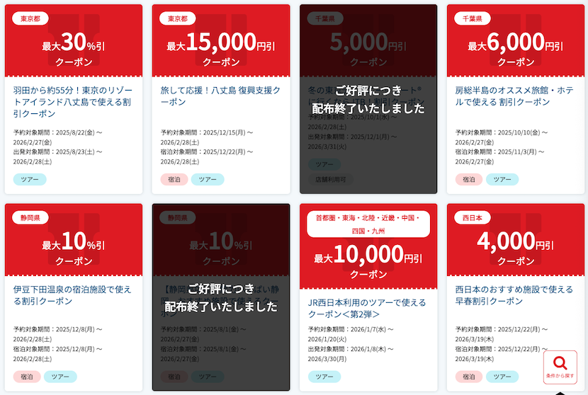 旅行の計画が決まったら、クーポン配布状況をこまめにチェックし、早めに取得・利用することが大切です。