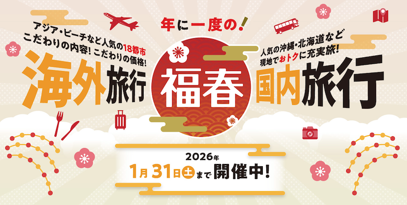 2026年1月31日まで開催され、海外ツアーを中心にお得な価格の商品が多数登場します。