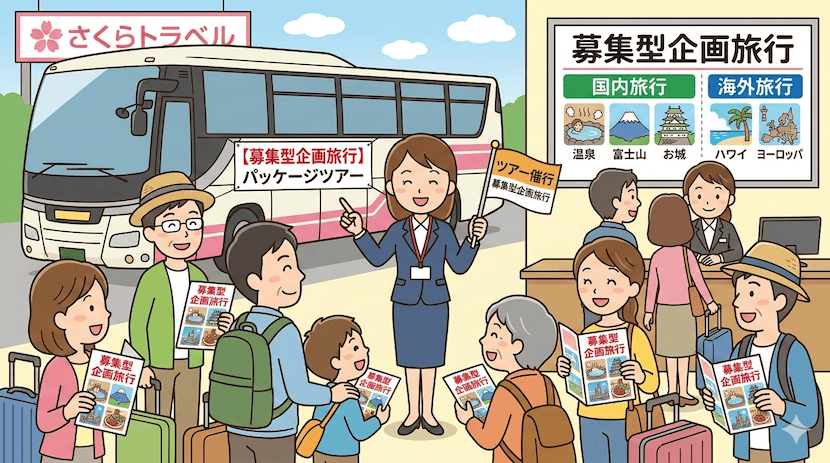 募集型企画旅行とは、旅行会社があらかじめ旅行内容を企画・造成し、参加者を募集して実施する旅行商品のことです。