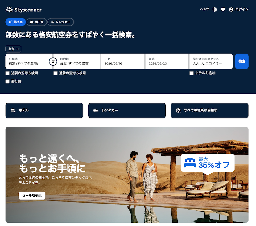 スカイスキャナーは、世界中の航空券を一括で比較できる便利なツールとして、多くの旅行者に利用されています。