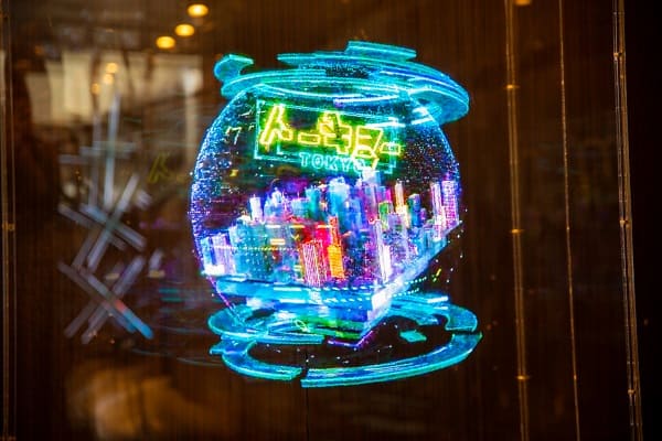 立体的に浮かび上がる映像演出により、店舗前での注目度向上が期待できます。