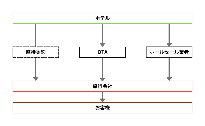 ホテルの仕入れ方法は、大きく分けて「直接契約」・「予約サイト(OTA)経由」・「ホールセール業者経由」の3つです。